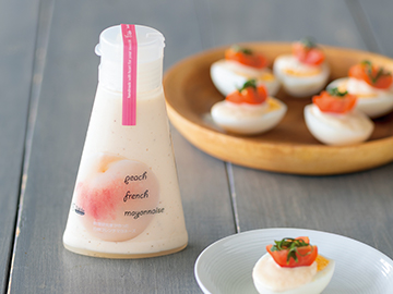 「白桃フレンチマヨネーズ」は、ほんのりとしたモモの風味と、リンゴ酢のやさしい酸味、生姜や黒胡椒などのスパイス感とのバランスがよく、さまざまな料理を引き立てる逸品。料理を作れない忙しい日でも、買ってきた惣菜のフライなどに添えるだけで高級感が増し、食卓が華やぐのでおすすめです。「にっぽんの宝物2021-2022」素材・加工部門で、準グランプリに選ばれました。