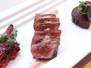 岡山の「食活」をテーマに当ホテル料理長が考案した、「OMOIYARI LAB」の無添加調味料「家族に優しいひとふり」シリーズ。「ピオーネシーズニング」は、岡山県産ピオーネを使った果実酢をベースに、肉と相性の良い酸味と甘みのバランスを考えて手作りしたスパイスです。塩コショウして焼いた肉にふりかければ、ピオーネらしい薄紫の粉末に彩られてドレスアップ。ピオーネの風味がほんのり感じられる洗練された味わいになり、肉料理がより食べやすくなります。このほか、野菜用の「雄町米酒粕と備前味噌のコク旨スパイス」、魚用の「瀬戸内オリーブ芳醇スパイス」と全3種類のスパイスを用意。パッケージの点描画と題字は、岡山市在住のハンディキャップアーティストが描いた力作です。