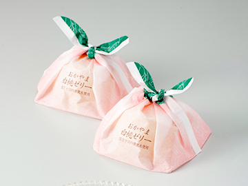 モモをモチーフにした、愛らしいパッケージが印象的な「おかやま白桃ゼリー」。なんと大胆にも、そのまま生で食べても十分においしい岡山県産白桃が半割りも使われています。白桃の果肉をぷるんと包むまろやかなゼリーは、「日本最後の清流」とも言われる四万十川の天然水と白桃ピューレで製造。口中に広がる、とろけるような豊潤な香りと甘さは、岡山県産の白桃ならでは。果実とゼリーのダブルで堪能できるモモの味わいが贅沢です。「第24回全国菓子大博覧会」で農林水産大臣賞に輝いた逸品は、お土産にはもちろん、自身へのごほうびにも。